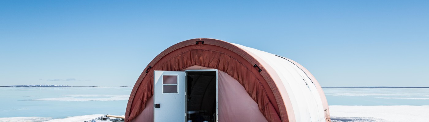Under the Polar Haven, Aurélie and I collected water just from underneath the ice, at the interface, and from two meters beneath as well. The two samples display completely different salinities. At the interface, it’s fresh water. It’s actually the melted snow that percolated (a new word to my vocabulary) under the ice sheet a couple of days ago. While deeper, the water displays a higher salinity, typical of sea water. It’s this second sample that will be sent in Germany for the metagenomics.